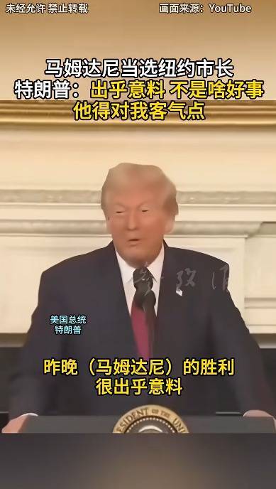 《华盛顿邮报》称,谈及马姆达尼的演讲,特朗普说,这是一场“怒气冲冲的演讲”。当被问及是否会与马姆达尼接触时,特朗普表示,“他应该主动联系我们才更合适。”、